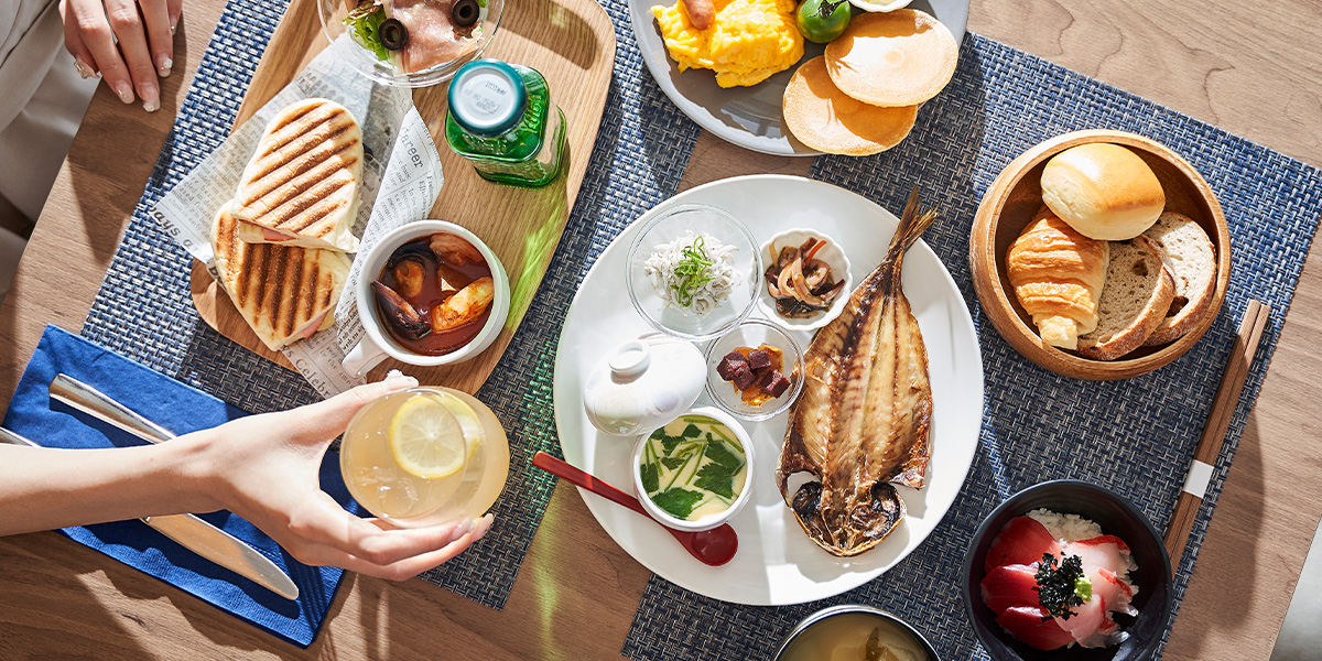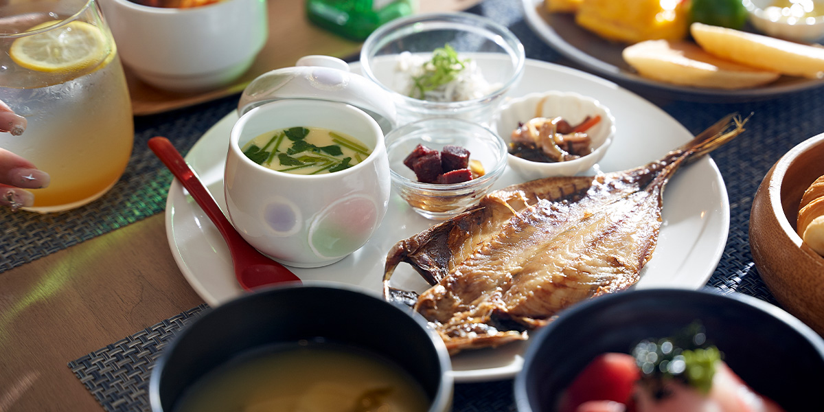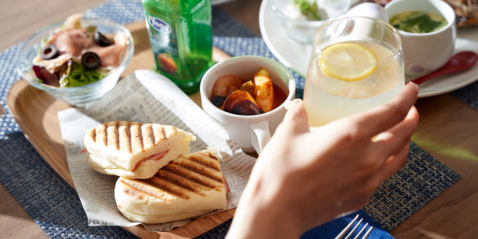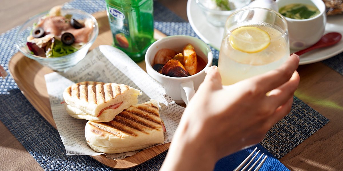 焼きたて熱々のパニーニと魚介の旨味たっぷりのトマトスープ、生ハムのサラダを添えたイタリアンプレートをはじめ、駿河湾の海の恵みを活かした一品など、和洋ビュッフェをご用意しています。