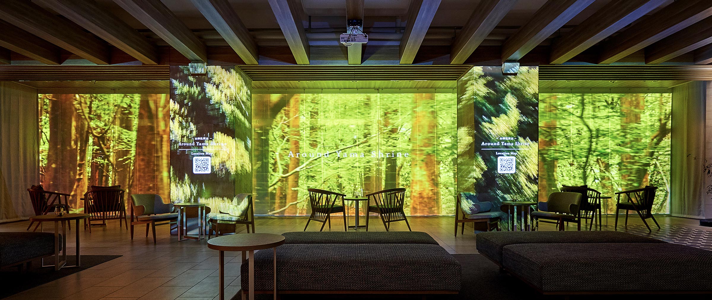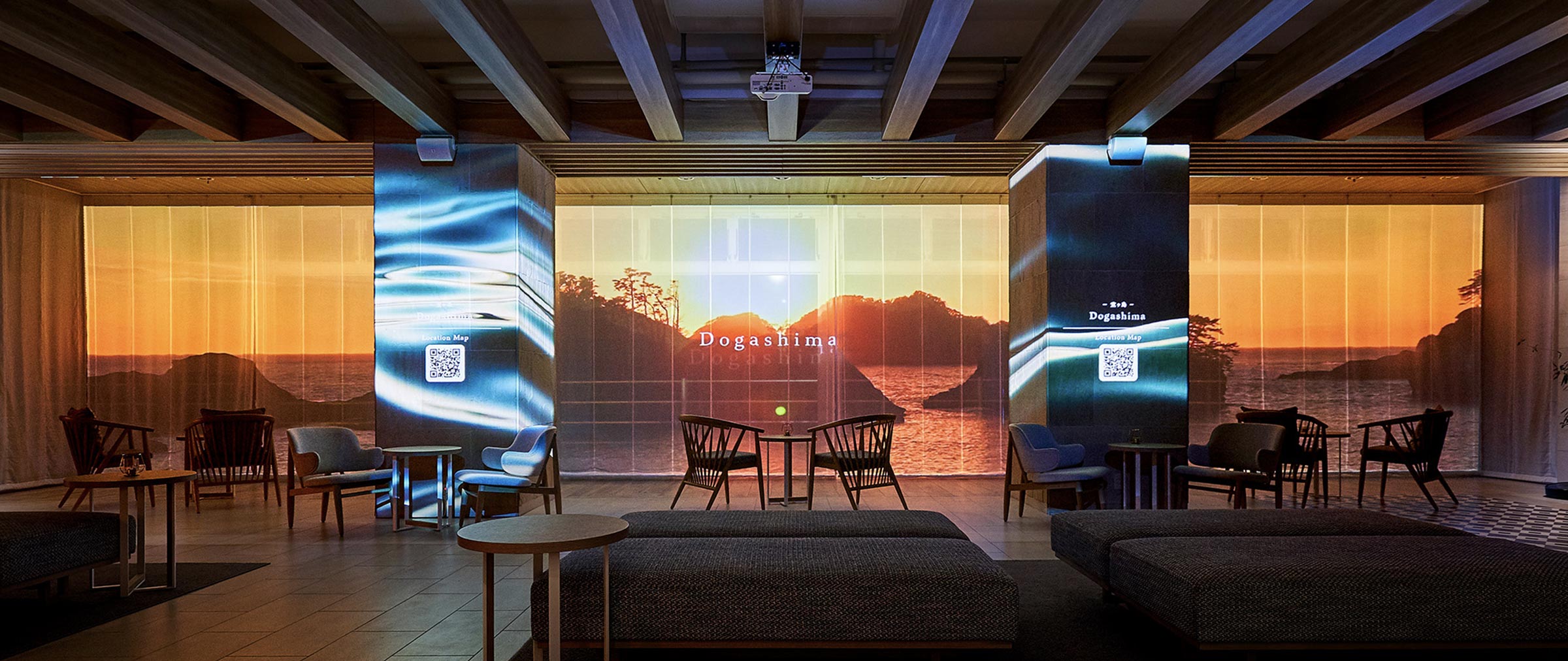 ロビーでは毎夜、大迫力の西伊豆の大自然をお楽しみいたけるプロジェクションマッピングをご用意しております。