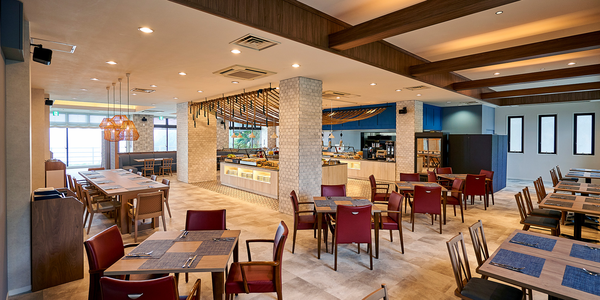 ディナーは西伊豆の海と山の恵をイタリアンで、朝食は地元の味覚を取り入れたビュッフェをお楽しみください。
