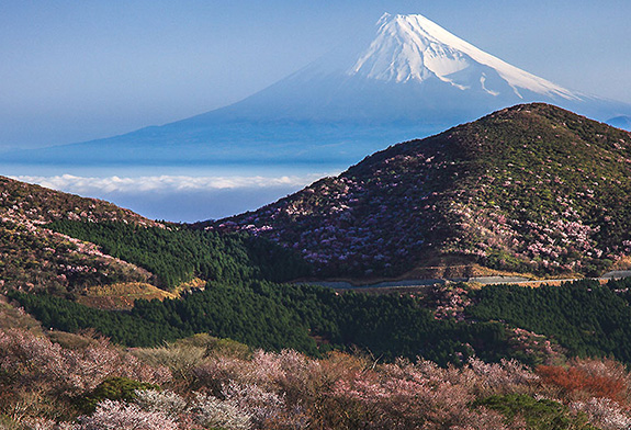 約140万年前の噴火でできた蛇石火山の裾野にある、東日本では珍しい石積みの棚田。標高120〜250mに広がる田んぼは約370枚、4.2haにも及びます。眼下に駿河湾を一望でき、晴れた日は富士山が一望できます。