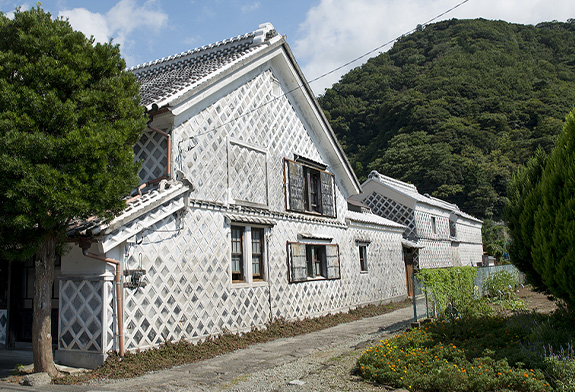 全国でも希少ななまこ壁の建造物を見ることができる通りです。「なまこ壁」は、平瓦を壁に貼り付け、目地を海の生き物「なまこ」のように漆喰で盛り上げるスタイルからその名称がつきました。町では重要資源と位置づけ、保存活動が活発に行われています。